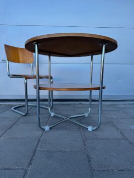 Jaren 30 koffietafel met twee houten bladen ontworpen in de jaren 30 door Gebroeders de Wit en gefabriceerd door de Galvanische Industrie.