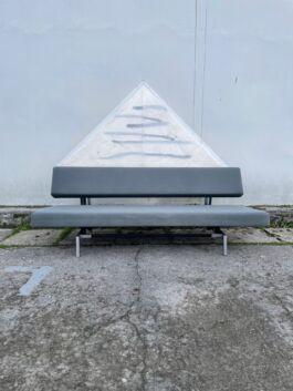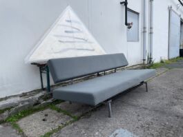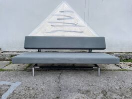 De slaapbank met de vierkante buis is het oorspronkelijke ontwerp van Martin Visser en is geproduceerd tussen 1960-1971door 't Spectrum. Deze versie heeft de mooie verchroomde poten. De vering bestaat uit Novag veren en de zitting is met een eenvoudige beweging naar voren te trekken, waardoor er een 1-persoonsbed ontstaat.