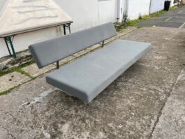 Deze bank heeft nog de originele grijze ploegstof bekleding en verkeert in nette gebruikte staat.